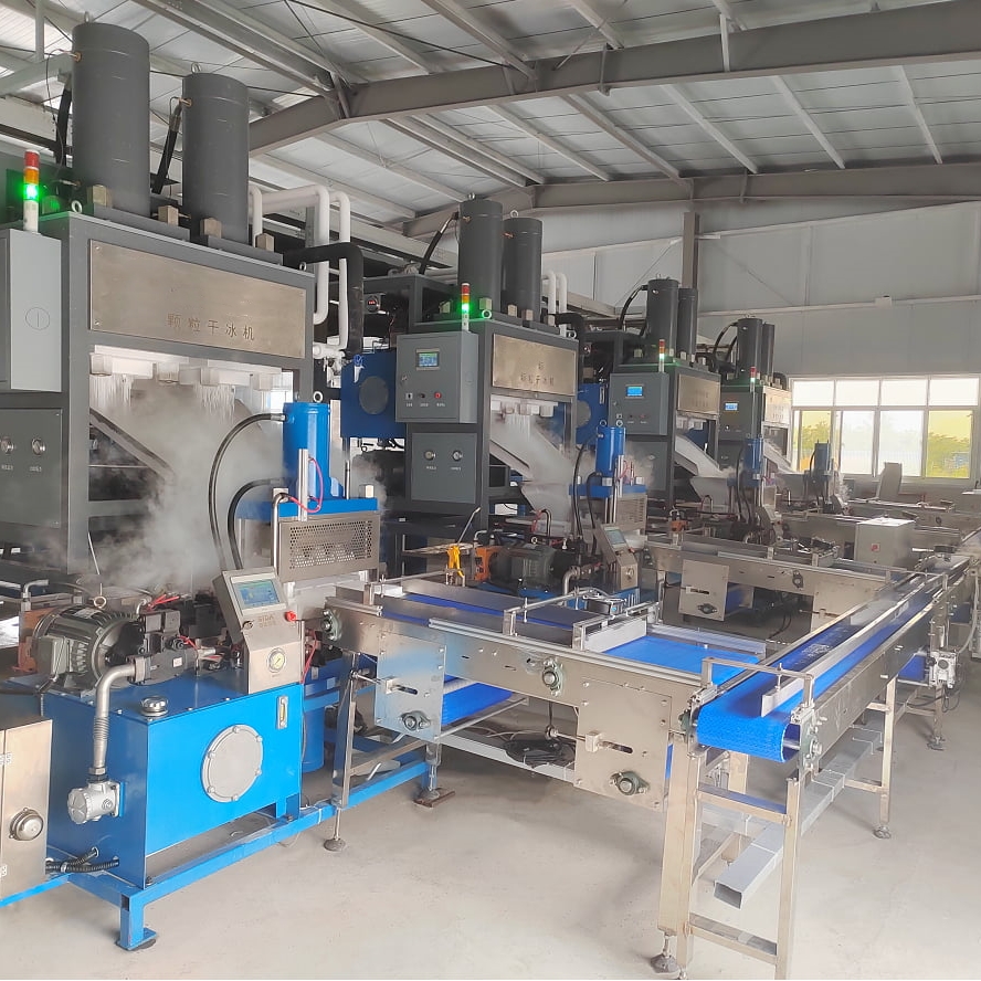 Automated System for High‑Efficiency Dry Ice ManufacturingThe Dry Ice Production Line is a fully automated system designed to manufacture dry ice pellets, blocks, or slices from liquid carbon dioxide. Engineered with precision dosing, compression, and extrusion technology, it ensures consistent product quality, high output efficiency, and reliable performance. Built with stainless steel construction, advanced safety features, and energy‑efficient design, the production line is widely used in food processing, cold chain logistics, industrial cleaning, medical applications, and scientific research requiring stable dry ice supply.