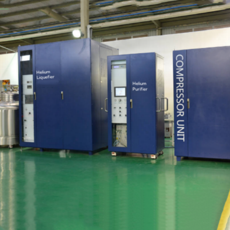 Advanced Cryogenic System for Helium Recovery and LiquefactionThe Helium Liquefaction Recovery System is an advanced cryogenic solution designed to capture, purify, and reliquefy helium gas for reuse in scientific, medical, and industrial applications. By integrating gas recovery, purification, and liquefaction technologies, the system minimizes helium loss, reduces operating costs, and ensures a sustainable supply of high‑purity liquid helium. Built with high‑efficiency compressors, cryogenic heat exchangers, and vacuum‑insulated storage vessels, it delivers reliable performance under continuous operation. This system is widely used in superconducting research, MRI facilities, quantum technology laboratories, and industrial processes requiring consistent helium availability.